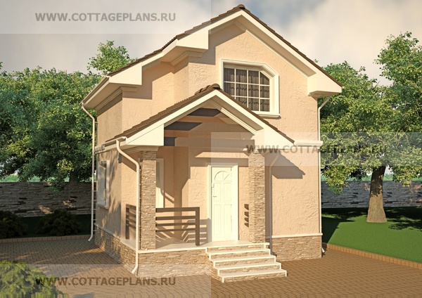 Проект дома 14-42 площадь 76.6 м2* каркасный, двухэтажный с мансардой, с двумя спальнями