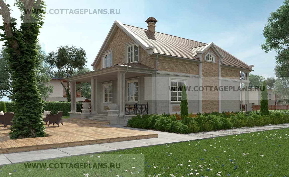 Проект дома 16-56 площадь 192.0 м2* каркасный, двухэтажный с мансардой, с встроенным гаражом на 1 машину
