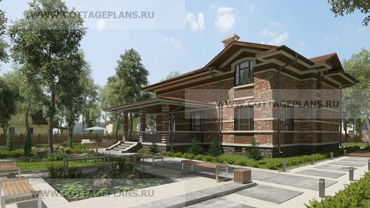 Проект дома 13-59 площадь 286.2 м2* каркасный, двухэтажный с мансардой, с пристроенным гаражом на 2 машины