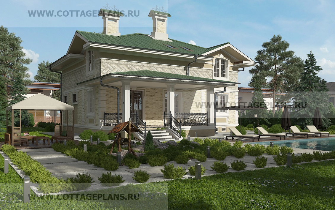 Проект дома 13-62 площадь 237.7 м2* каркасный, двухэтажный с мансардой, с встроенным гаражом на 1 машину