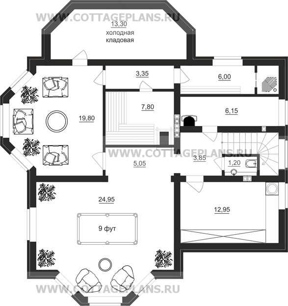 | Высота потолков цокольного этажа (мм.) | 2800 |
