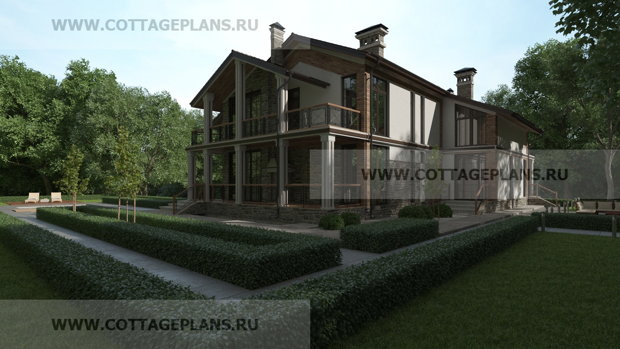 Проект дома 09-04 площадь 315.3 м2* каркасный, двухэтажный с мансардой, на две семьи, несимметричные