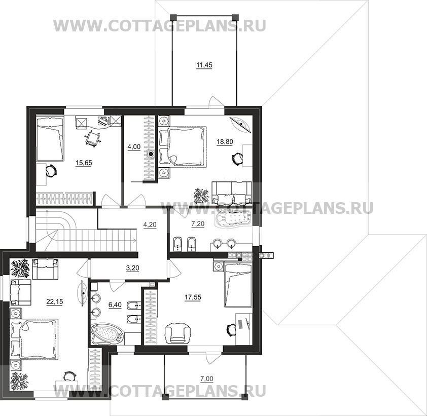| Высота потолков мансардного этажа (мм.) | 3000 |