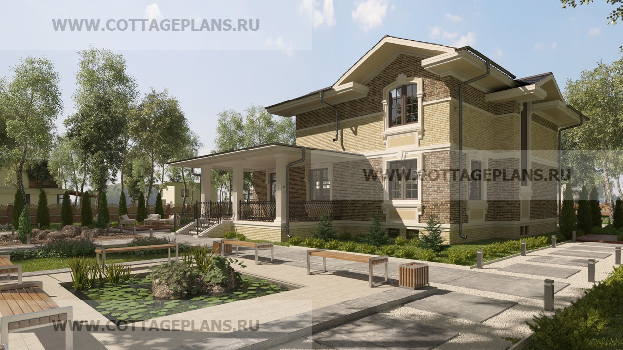 Проект дома 17-52 площадь 348.9 м2* каркасный, двухэтажный с мансардой, с пристроенным гаражом на 2 машины
