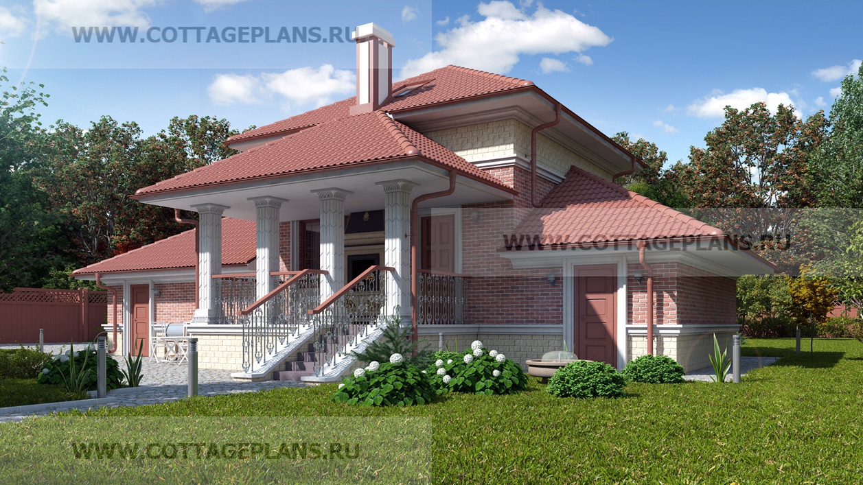 Проект дома 74-05 площадь 117.7 м2* из пеноблоков, газоблоков, двухэтажный с мансардой, с сауной, парной в доме