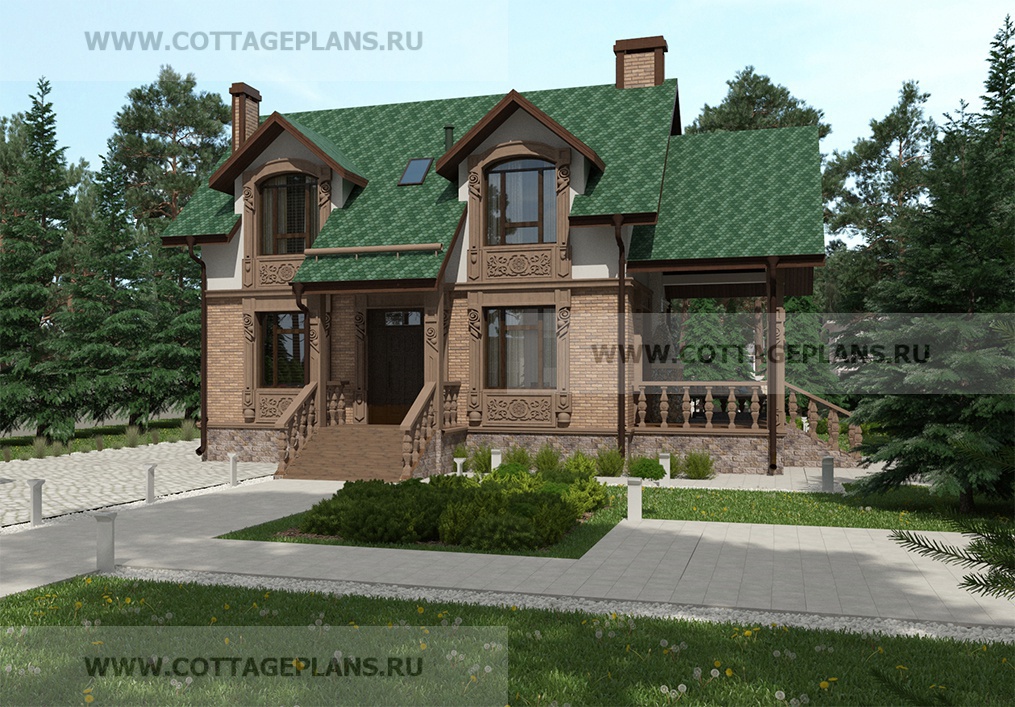 Проект дома 76-32 площадь 196.8 м2* из пеноблоков, газоблоков, двухэтажный с мансардой, с цокольным этажом