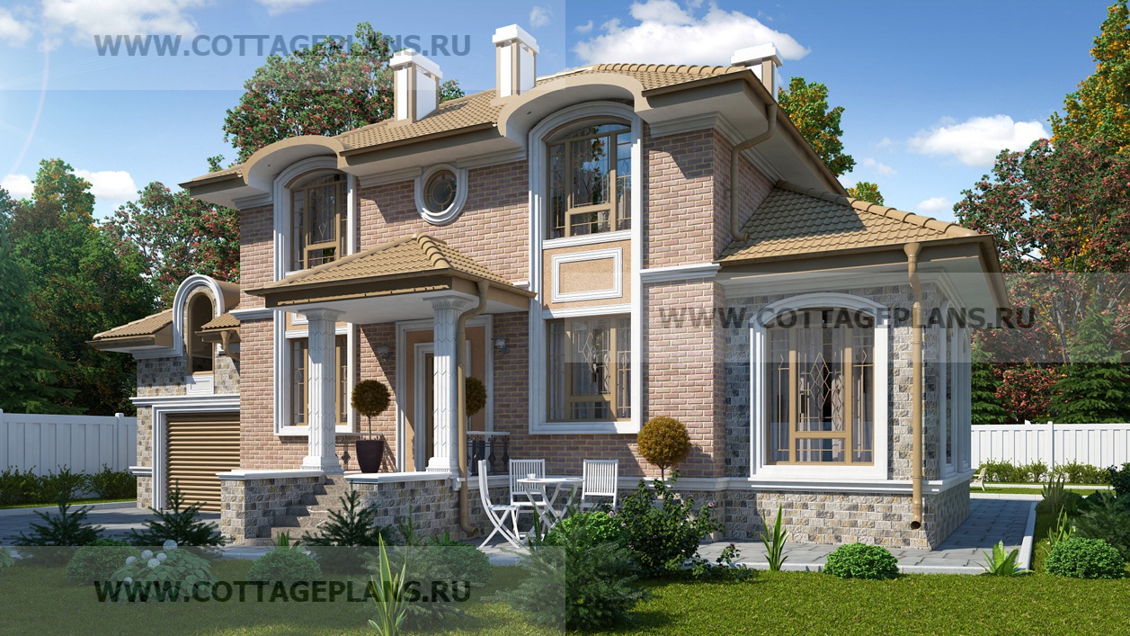 Проект дома 71-40 площадь 276.4 м2* из пеноблоков, газоблоков, двухэтажный с полноценным вторым этажом, с встроенным гаражом на 1 машину