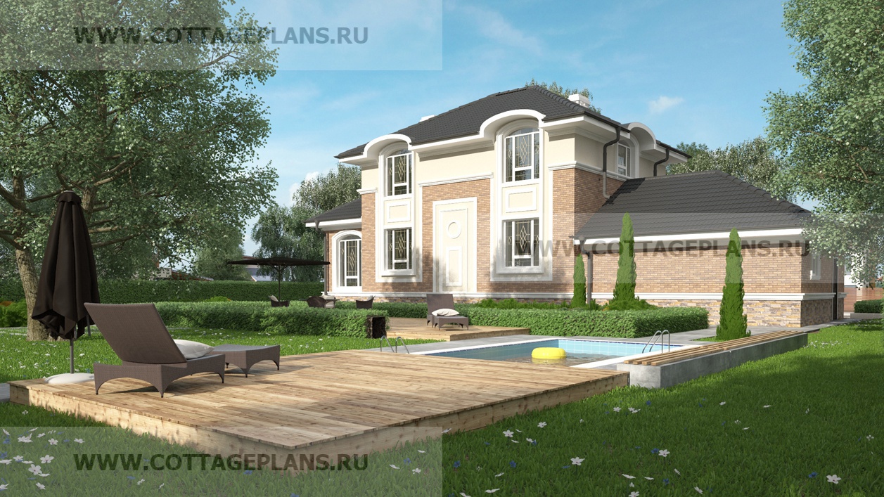 Проект дома 76-02 площадь 273.1 м2* из пеноблоков, газоблоков, двухэтажный с полноценным вторым этажом, с пристроенным гаражом на 2 машины