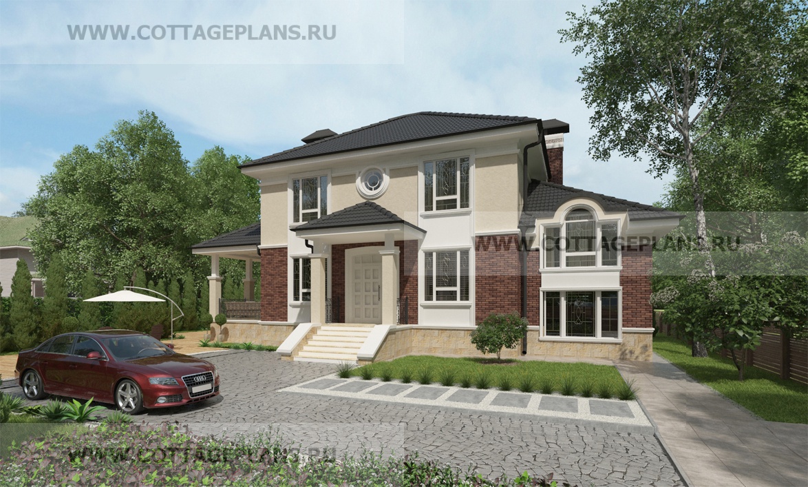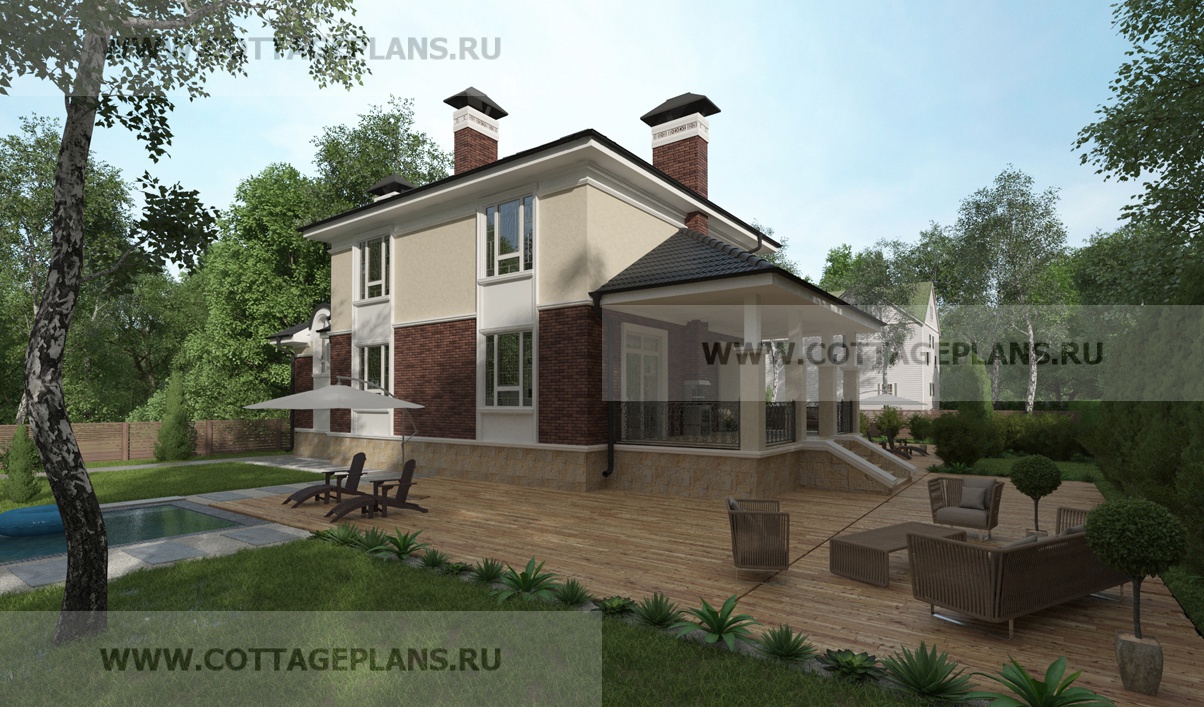 Проект дома 71-50 площадь 303.6 м2* из пеноблоков, газоблоков, двухэтажный с полноценным вторым этажом, с цокольным этажом