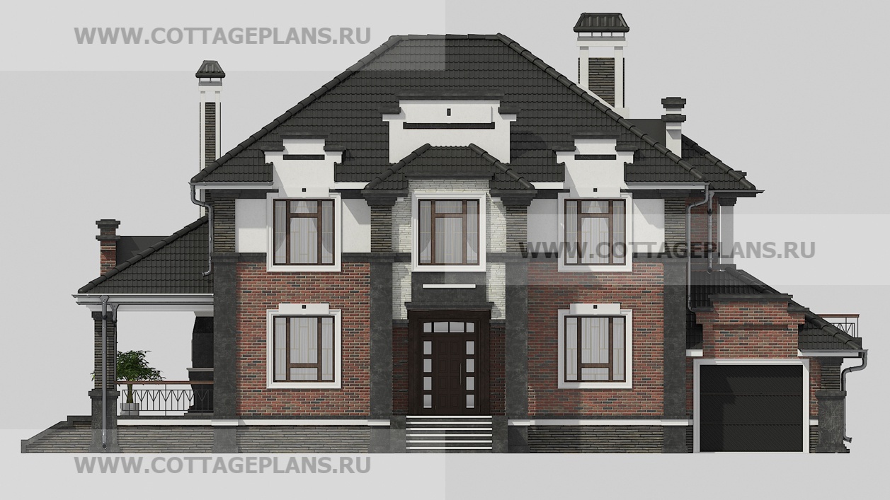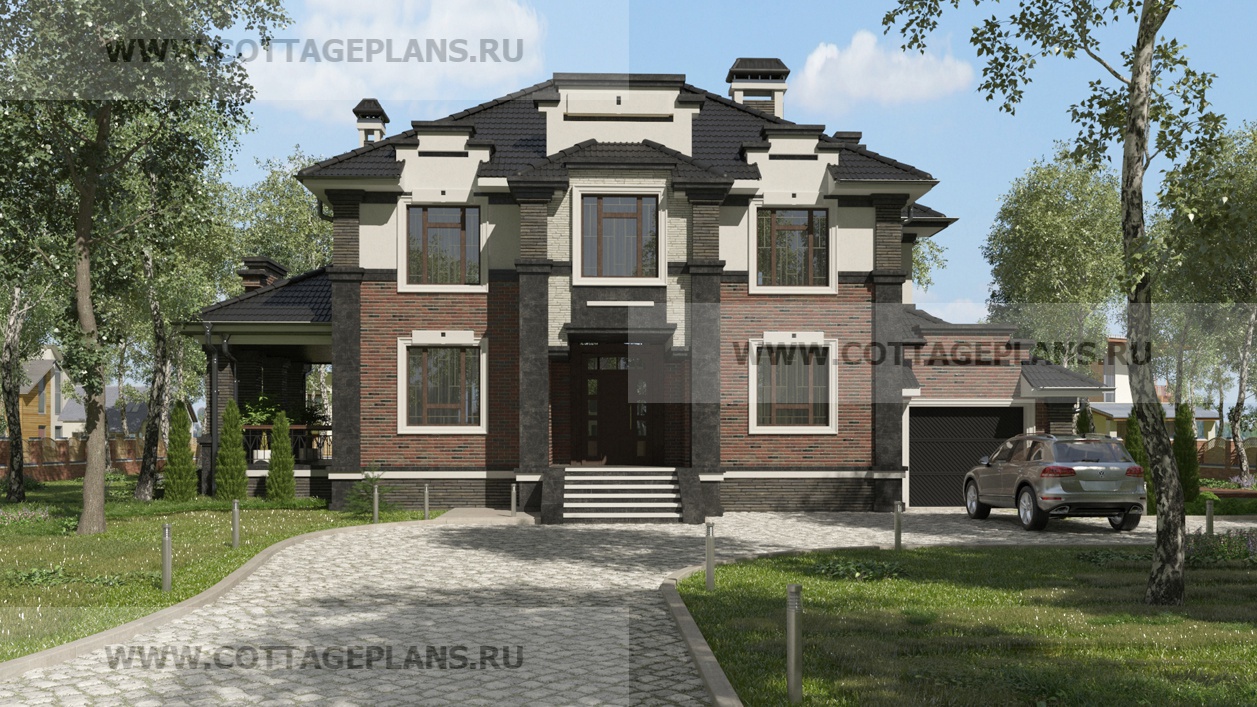 Проект дома 71-61 площадь 339.8 м2* из пеноблоков, газоблоков, двухэтажный с полноценным вторым этажом, с пристроенным гаражом на 1 машину