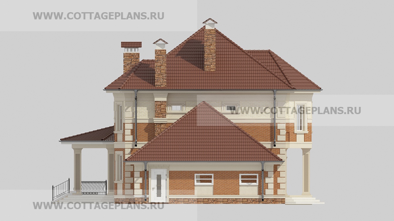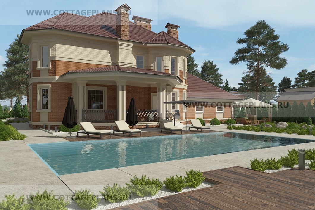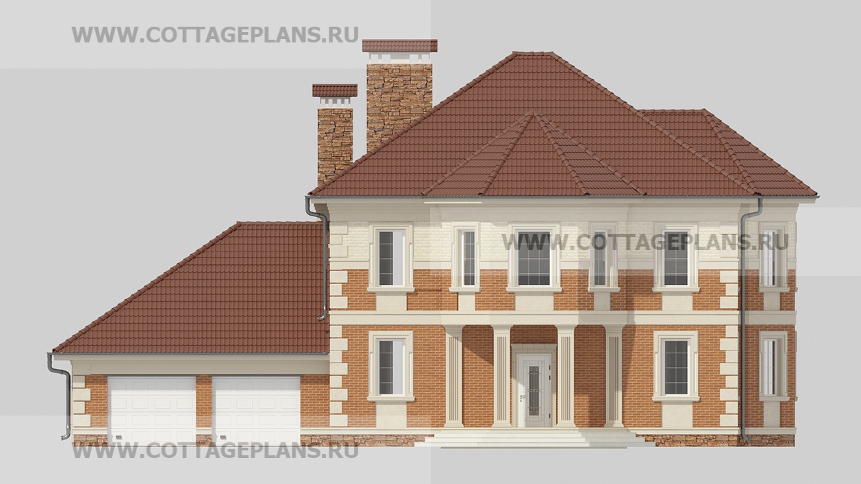 Проект дома 75-11 площадь 345.8 м2* из пеноблоков, газоблоков, трёхэтажный с мансардой, с пристроенным гаражом на 2 машины