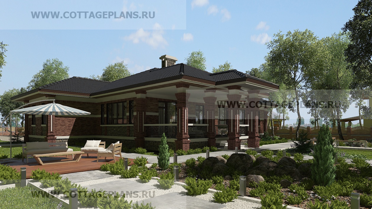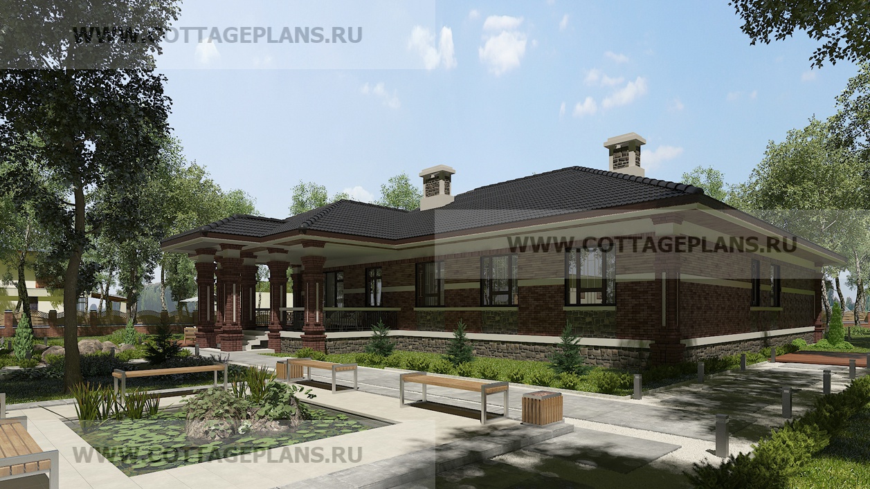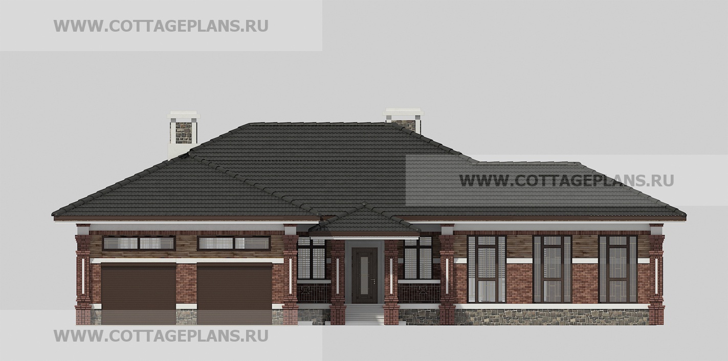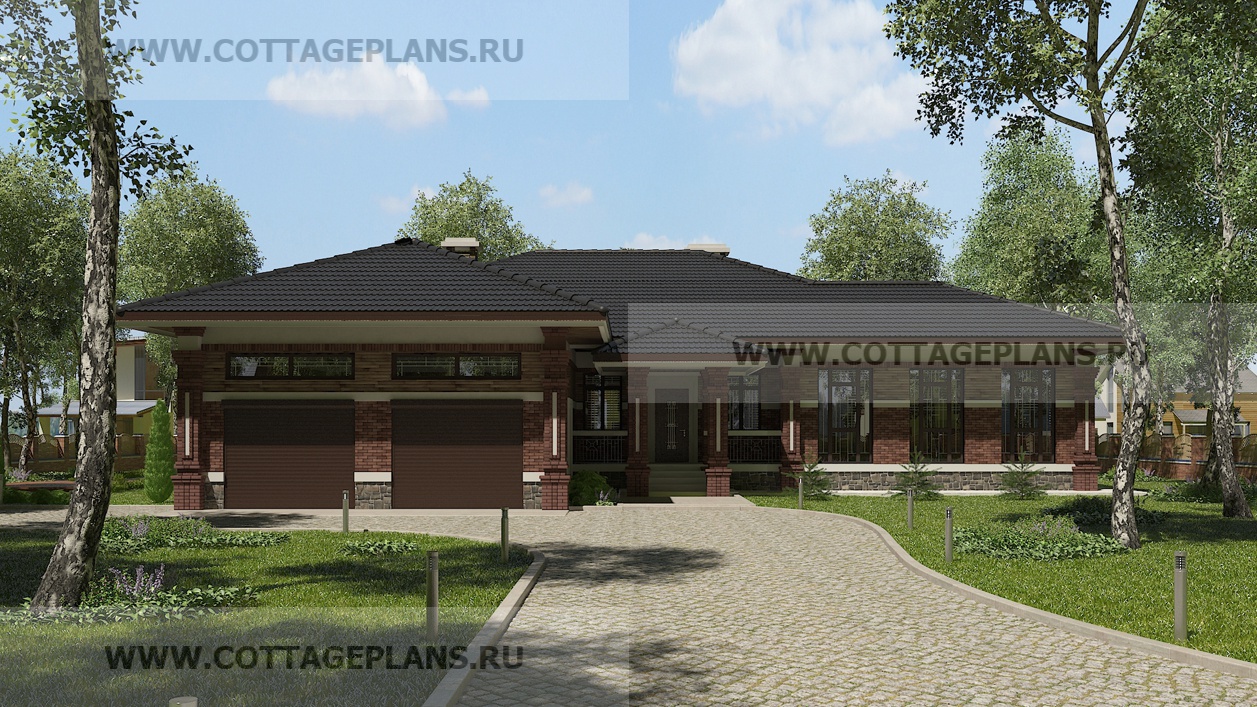 Проект дома 28-05 площадь 475.0 м2* из пеноблоков, газоблоков, одноэтажный, с пристроенным гаражом на 2 машины