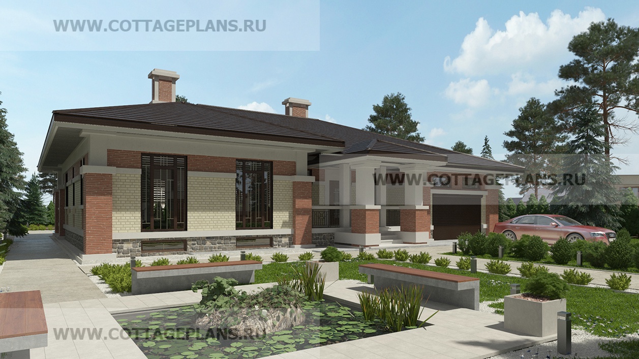 Проект дома 27-11 площадь 203.2 м2* из пеноблоков, газоблоков, одноэтажный, с пристроенным гаражом на 1 машину