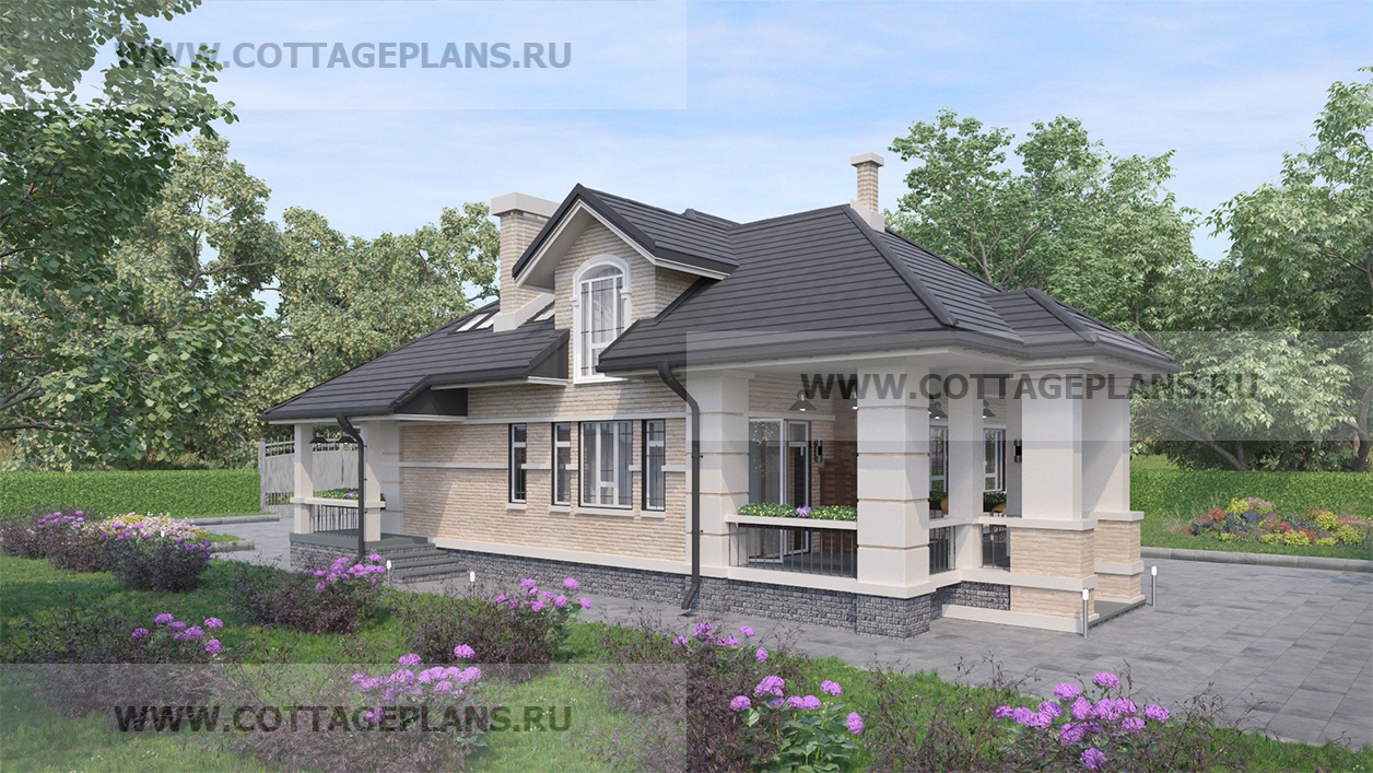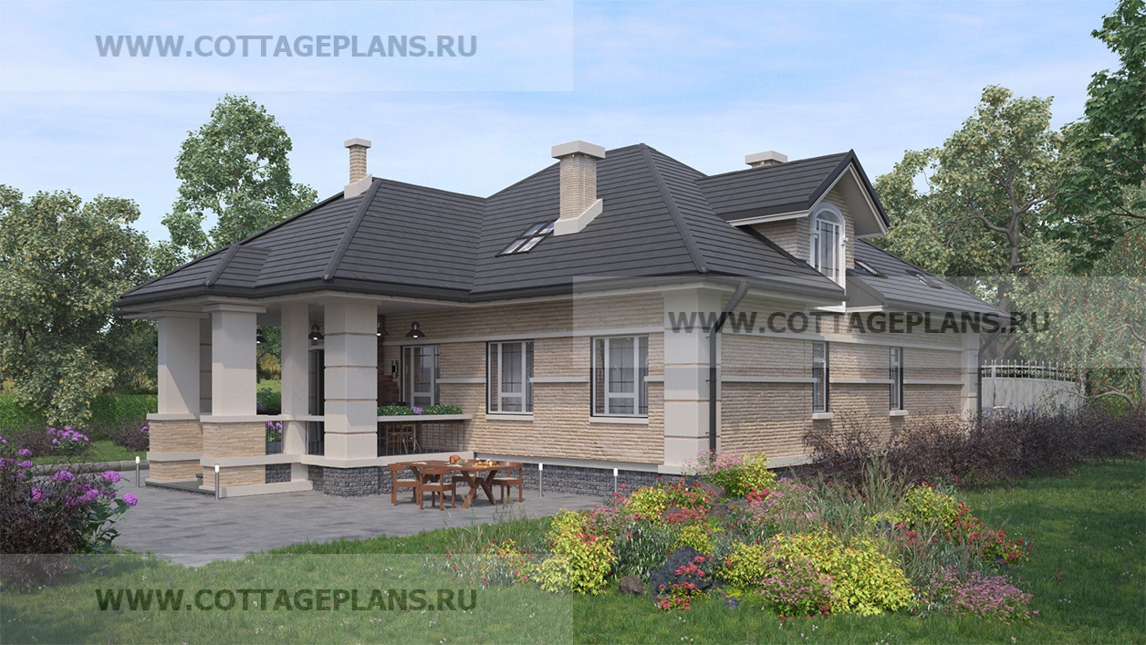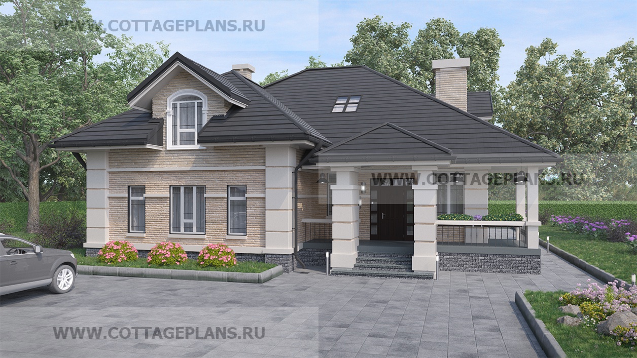 Проект дома 75-62 площадь 290.4 м2* из пеноблоков, газоблоков, двухэтажный с мансардой, с сауной, парной в доме