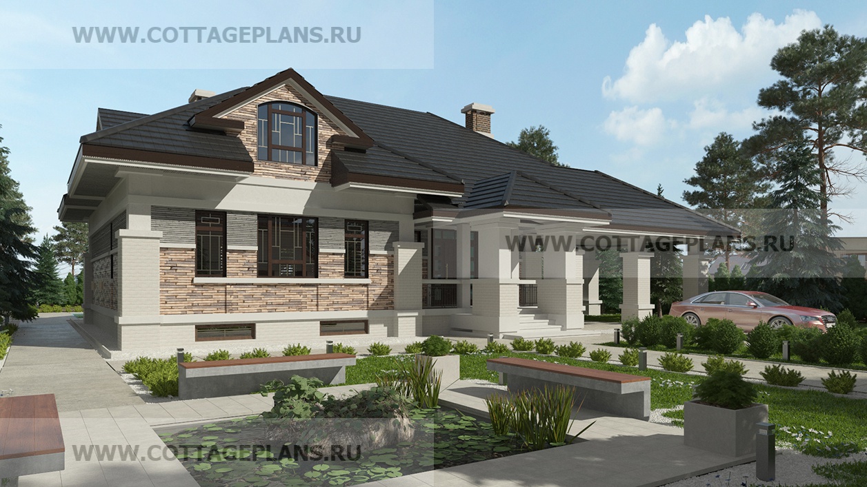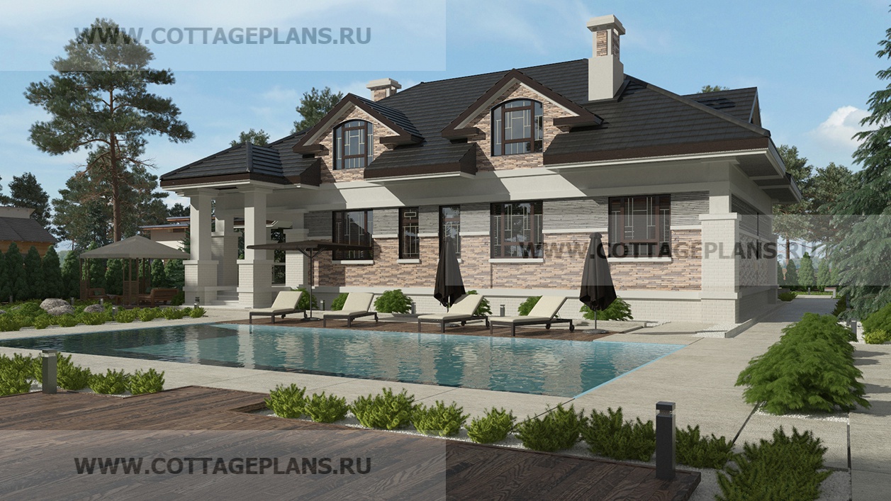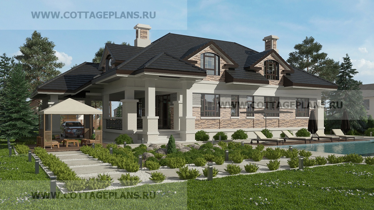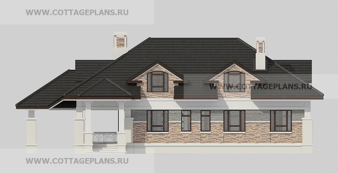 Проект дома 75-60 площадь 319.5 м2* из пеноблоков, газоблоков, двухэтажный с мансардой, с сауной, парной в доме