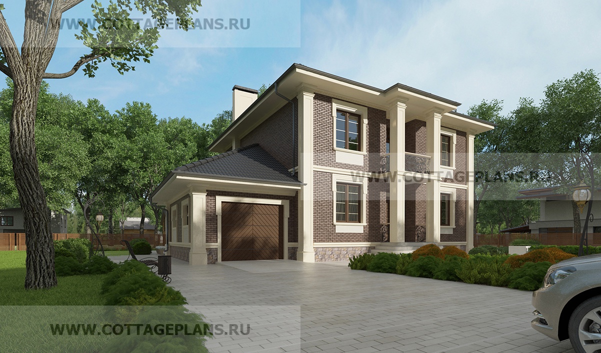 Проект дома 75-13 площадь 198.8 м2* из пеноблоков, газоблоков, двухэтажный с полноценным вторым этажом, с пристроенным гаражом на 1 машину