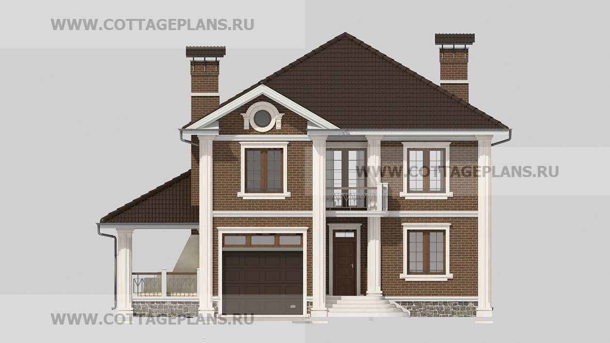 Проект дома 75-14 площадь 190.3 м2* из пеноблоков, газоблоков, двухэтажный с полноценным вторым этажом, с встроенным гаражом на 1 машину