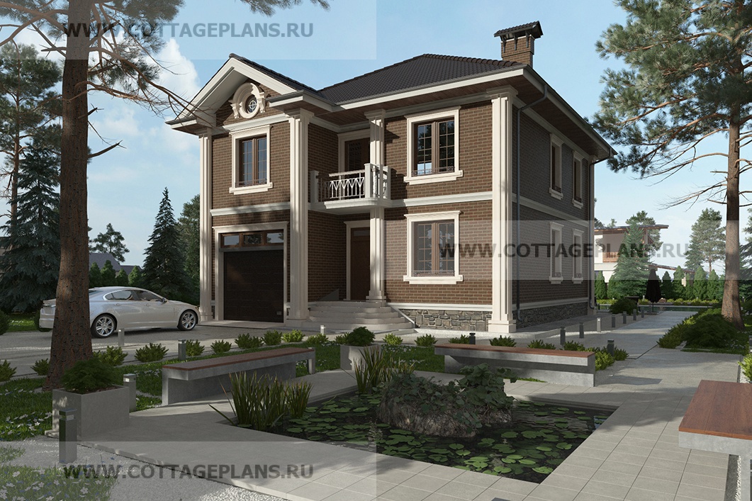 Проект дома 75-21 площадь 217.2 м2* из пеноблоков, газоблоков, двухэтажный с полноценным вторым этажом, с встроенным гаражом на 1 машину