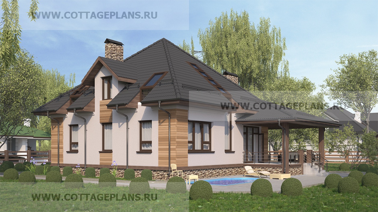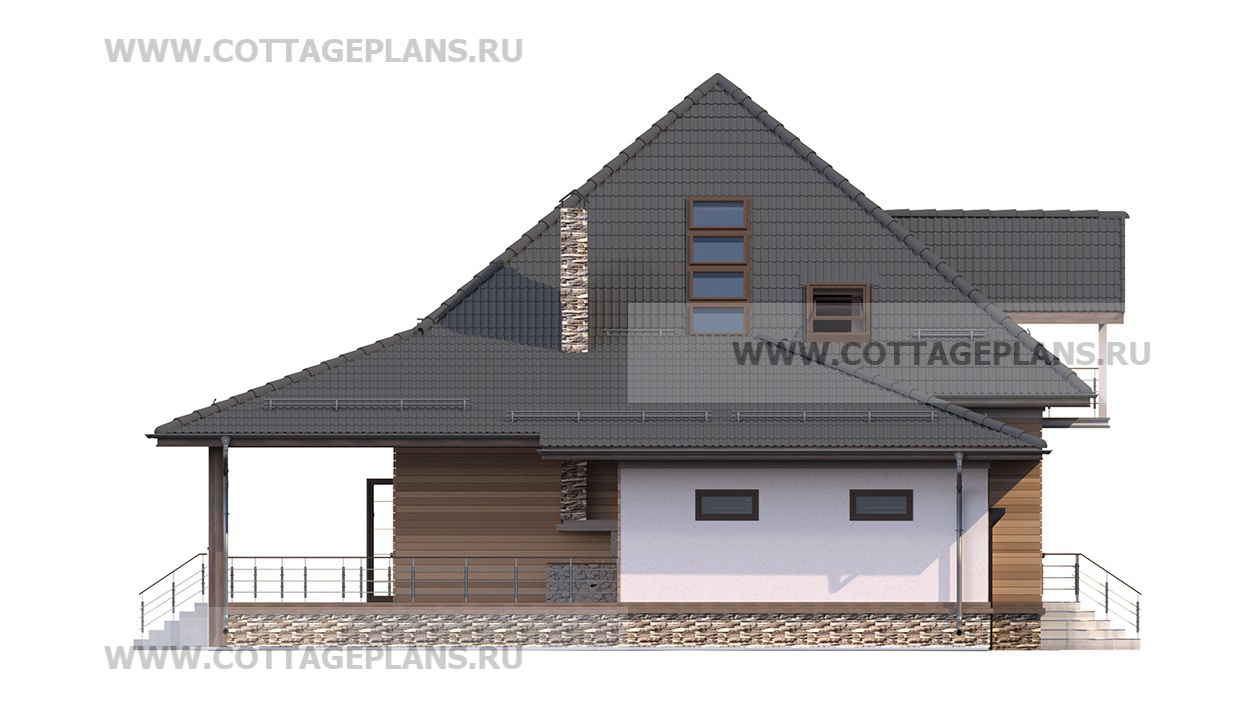 Проект дома 75-73 площадь 200.1 м2* из пеноблоков, газоблоков, двухэтажный с мансардой, с пристроенным гаражом на 1 машину