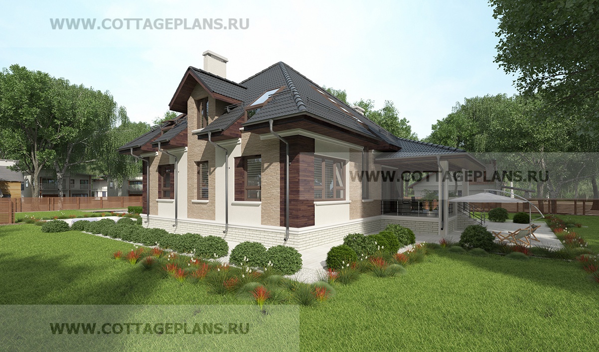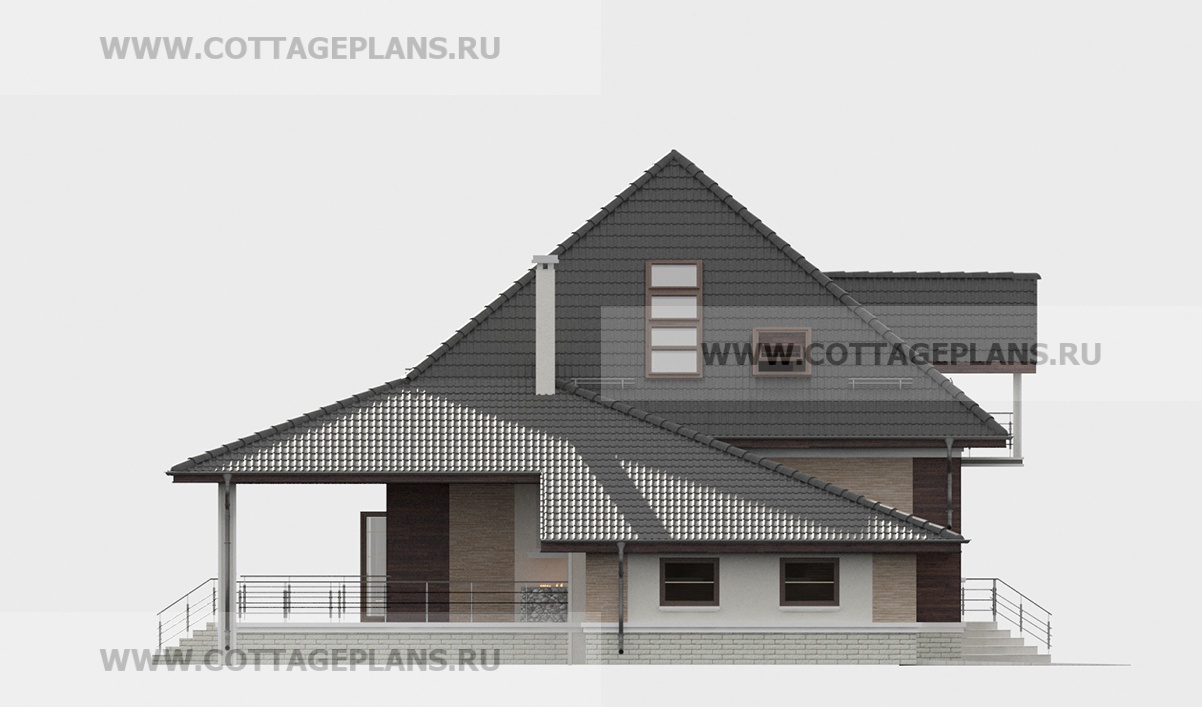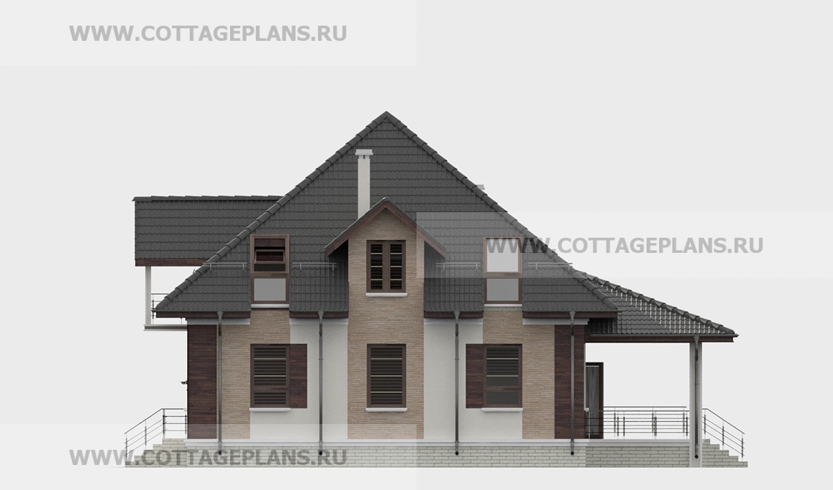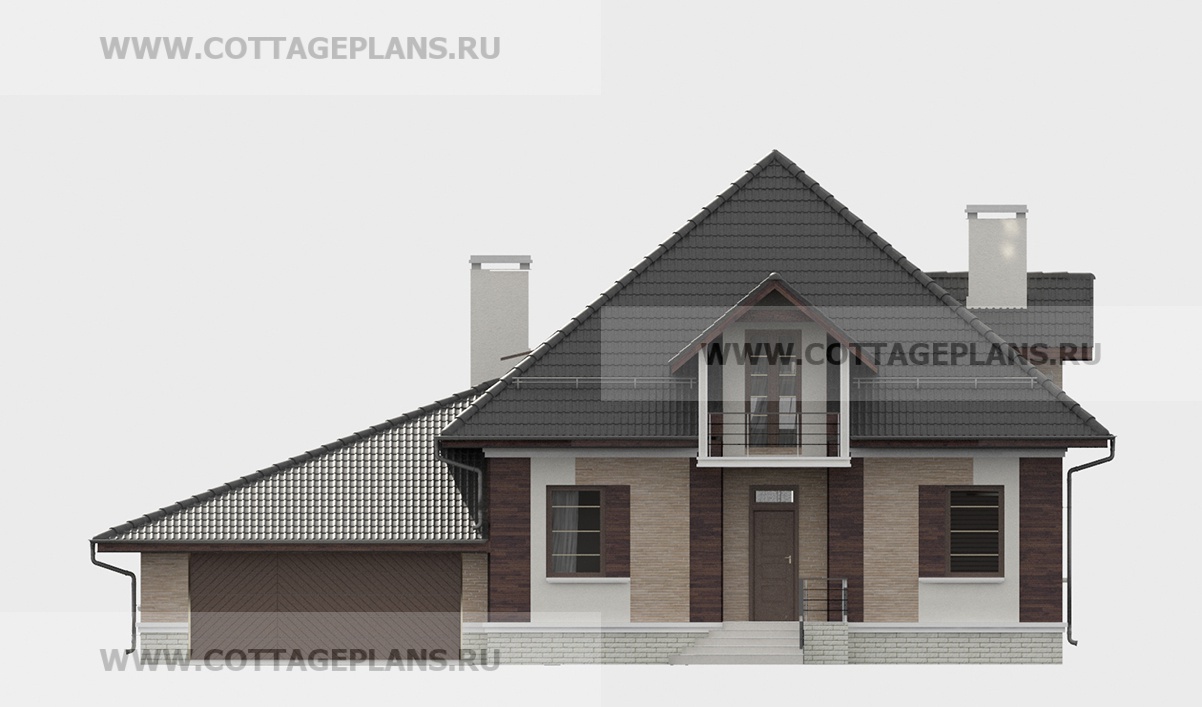 Проект дома 75-74 площадь 218.5 м2* из пеноблоков, газоблоков, двухэтажный с мансардой, с пристроенным гаражом на 2 машины