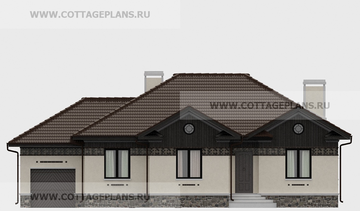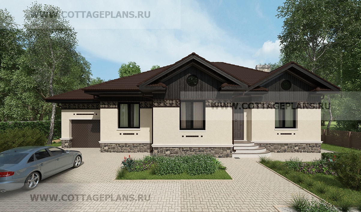 Проект дома 90-20 площадь 157.8 м2* из кирпича, керамических блоков, одноэтажный, с пристроенным гаражом на 1 машину