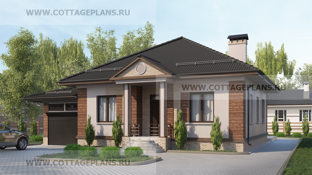 Проект дома 27-15 площадь 130.2 м2* из пеноблоков, газоблоков, одноэтажный, с пристроенным гаражом на 1 машину
