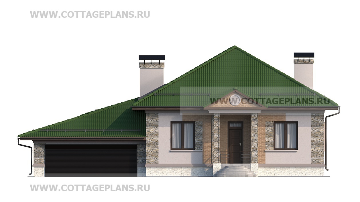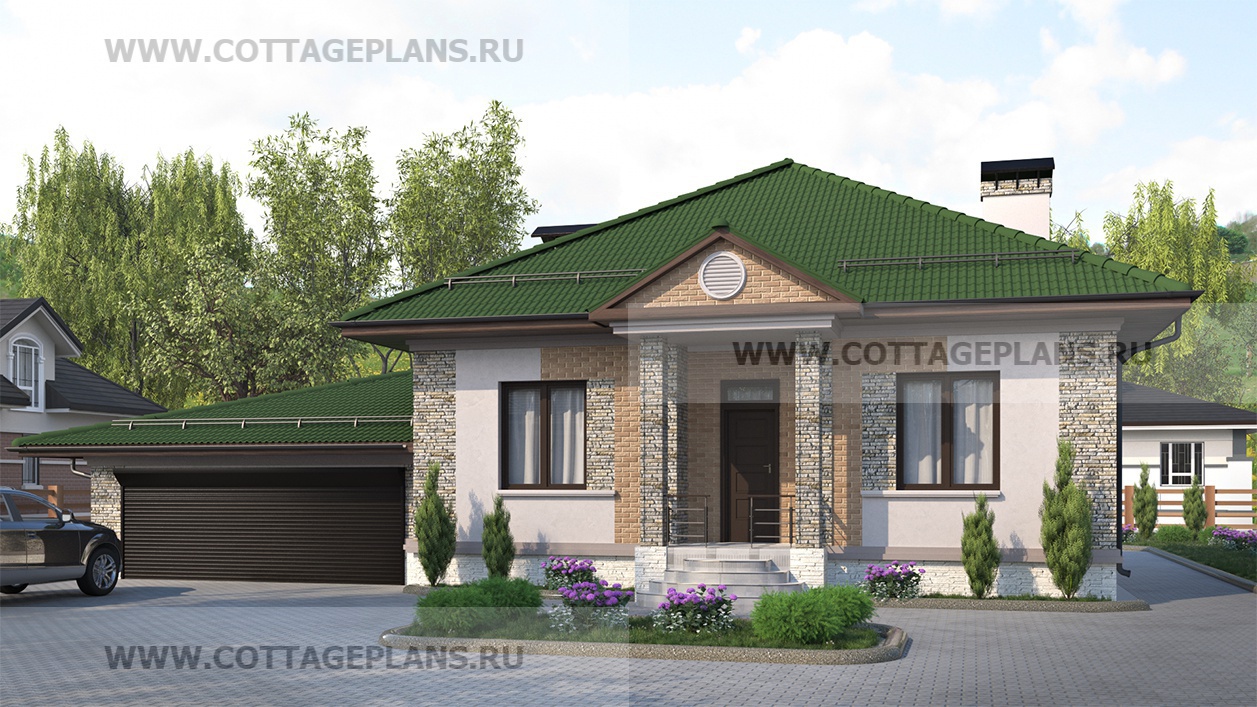 Проект дома 27-17 площадь 146.6 м2* из пеноблоков, газоблоков, одноэтажный, с пристроенным гаражом на 2 машины