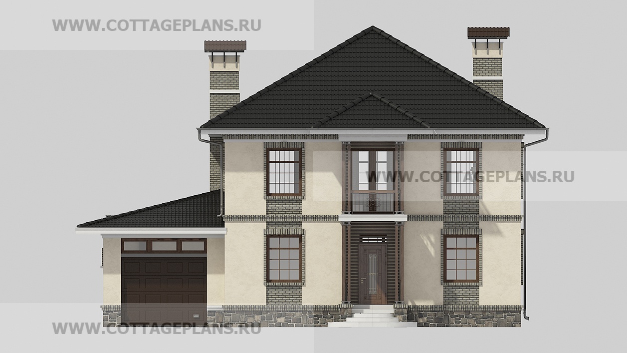 Проект дома 76-16 площадь 325.4 м2* из пеноблоков, газоблоков, двухэтажный с полноценным вторым этажом, с пристроенным гаражом на 1 машину