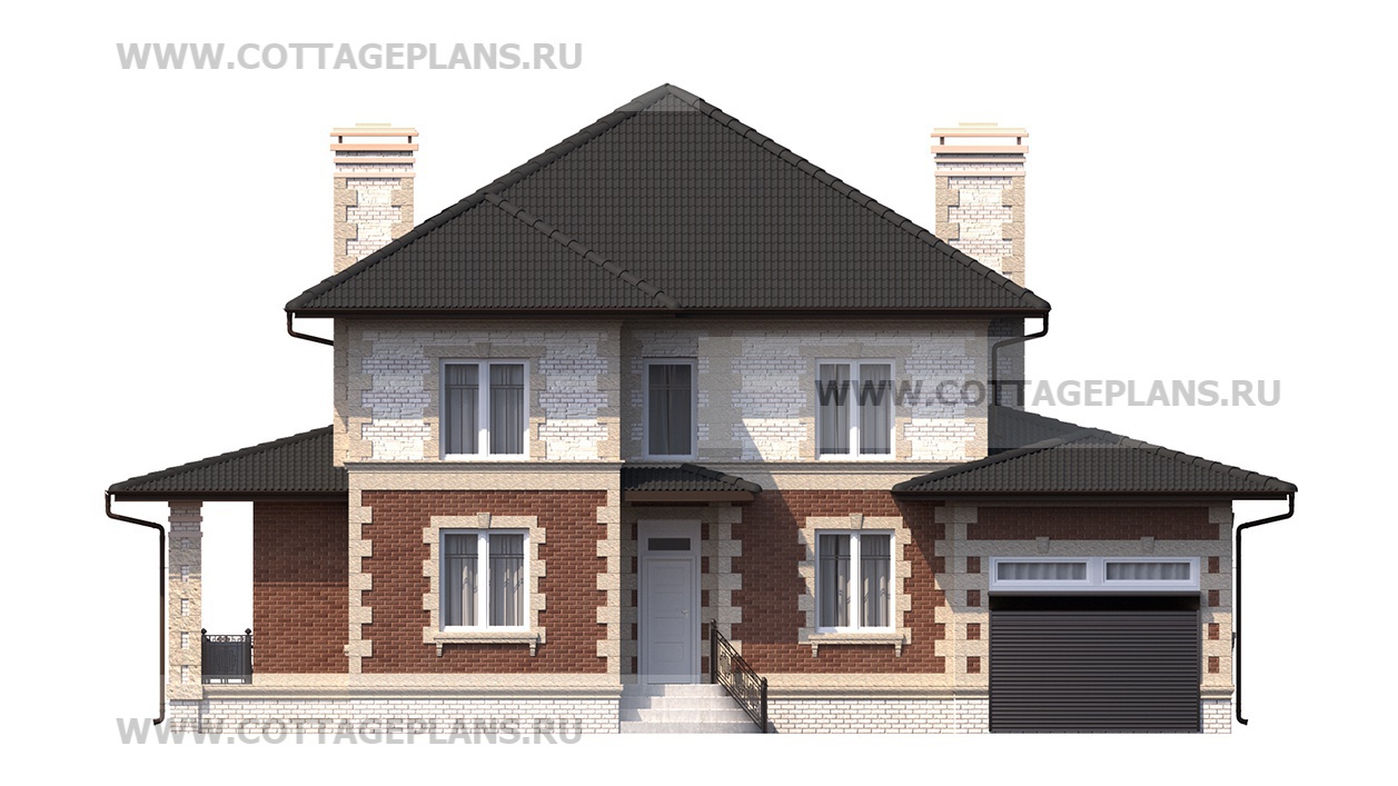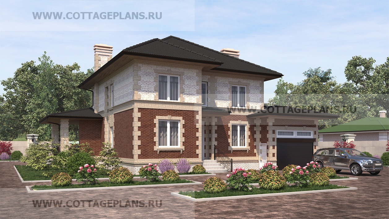 Проект дома 76-33 площадь 388.7 м2* из пеноблоков, газоблоков, двухэтажный с полноценным вторым этажом, с пристроенным гаражом на 1 машину