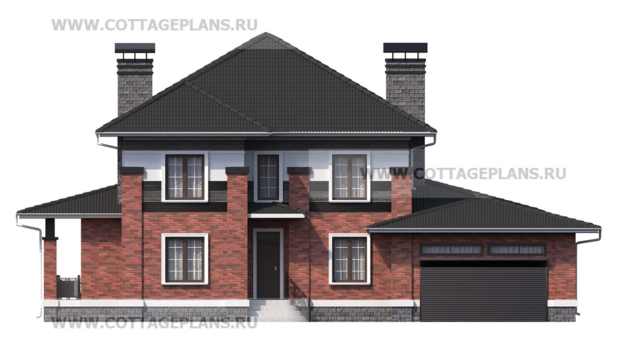 Проект дома 76-38 площадь 409.8 м2* из пеноблоков, газоблоков, двухэтажный с полноценным вторым этажом, с пристроенным гаражом на 2 машины