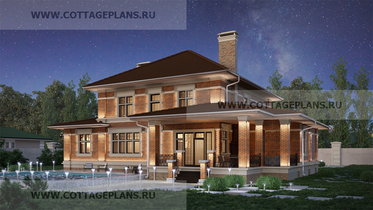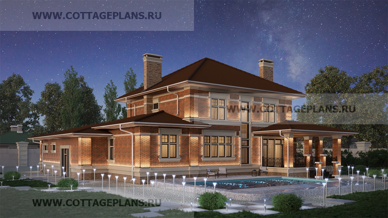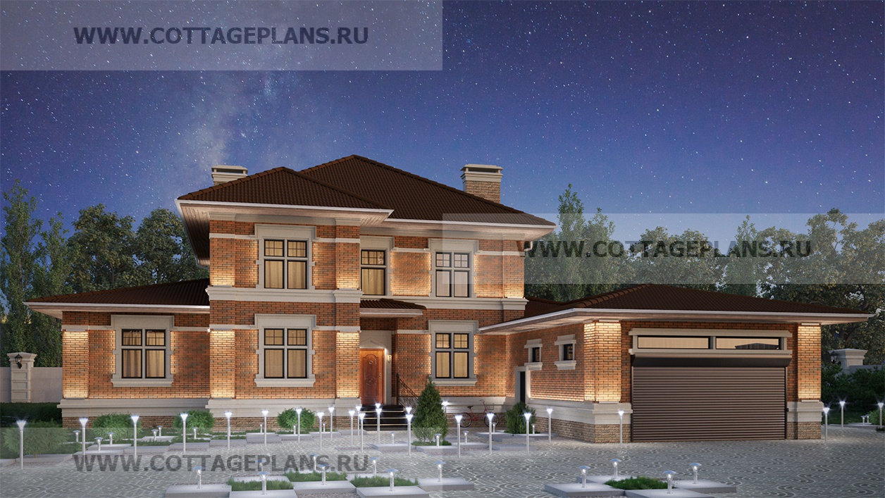 Проект дома 76-36 площадь 510.4 м2* из пеноблоков, газоблоков, двухэтажный с полноценным вторым этажом, с пристроенным гаражом на 2 машины