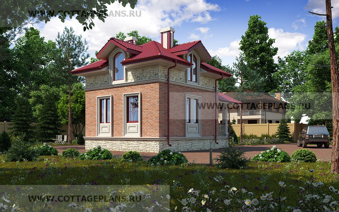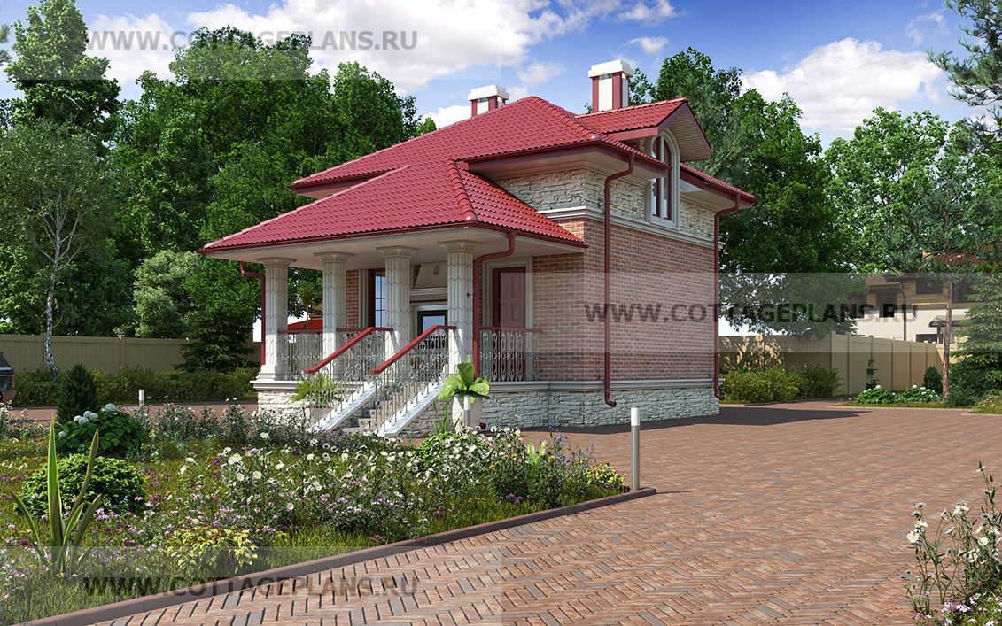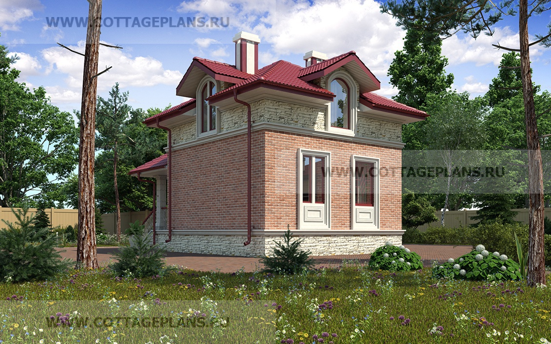 Проект дома 74-01 площадь 61.0 м2* из пеноблоков, газоблоков, двухэтажный с мансардой, с двумя спальнями