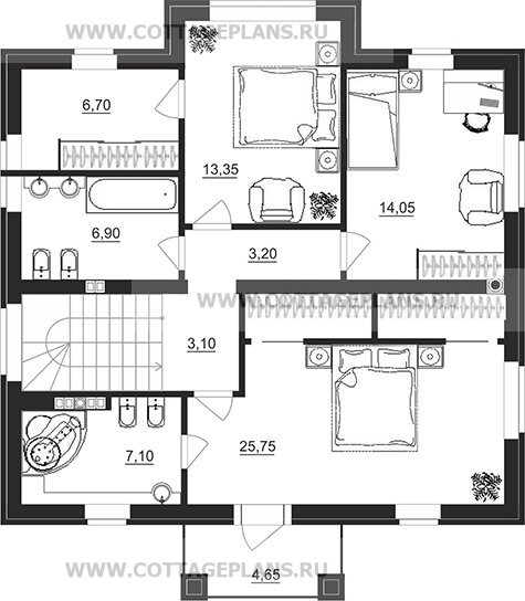 - 4 спальни с цоколем габариты 10 на 15