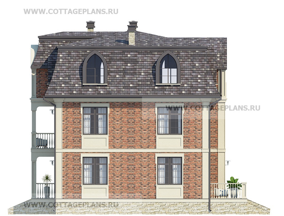 Проект дома 74-66 площадь 241.7 м2* из пеноблоков, газоблоков, трёхэтажный с полноценным вторым этажом, с сауной, парной в доме