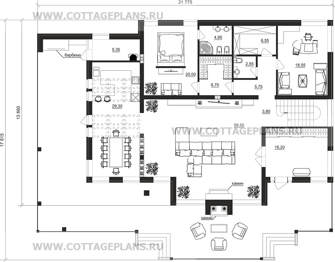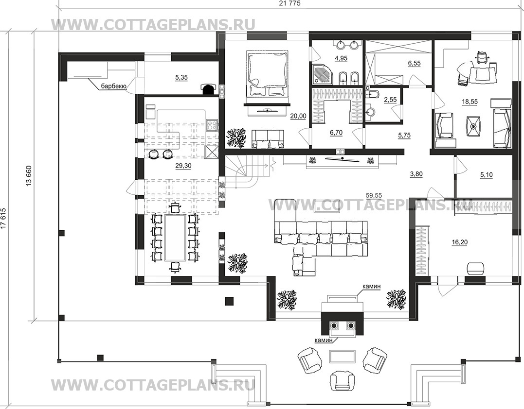 Проект дома 75-56 площадь 295.9 м2* из пеноблоков, газоблоков, двухэтажный с полноценным вторым этажом, со вторым светом