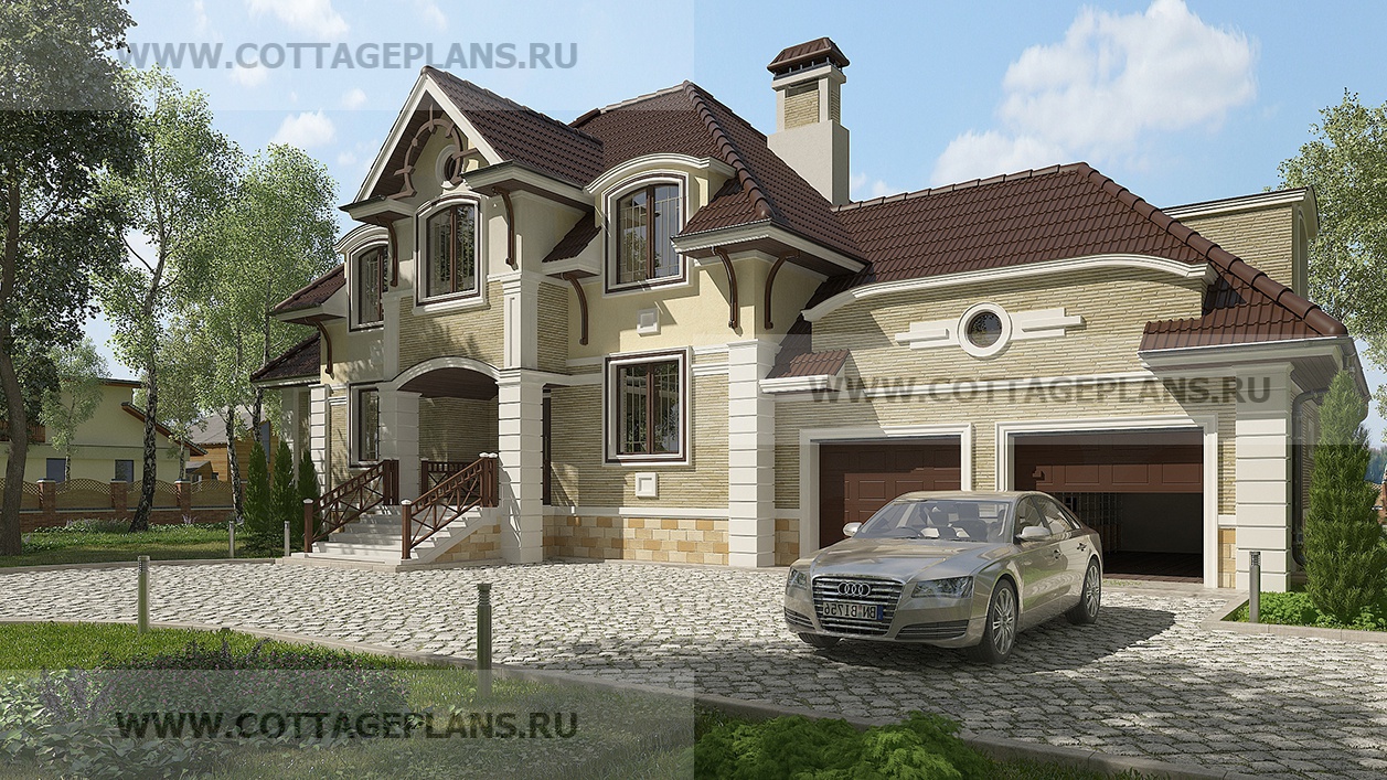Проект дома 76-82 площадь 430.9 м2* из пеноблоков, газоблоков, двухэтажный с полноценным вторым этажом, с пристроенным гаражом на 2 машины