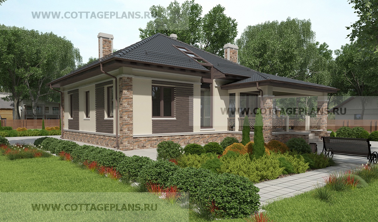 Проект дома 07-27 площадь 109.4 м2* каркасный, одноэтажный, с гаражом на одну машину, выдвинутым вперед перед домом