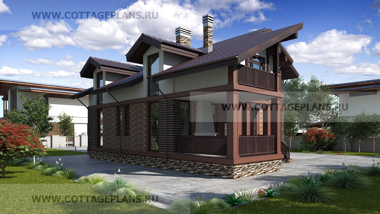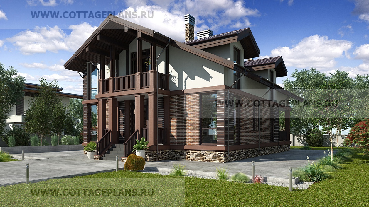 Проект дома 75-46 площадь 202.9 м2* из пеноблоков, газоблоков, двухэтажный с полноценным вторым этажом, с пятью спальнями