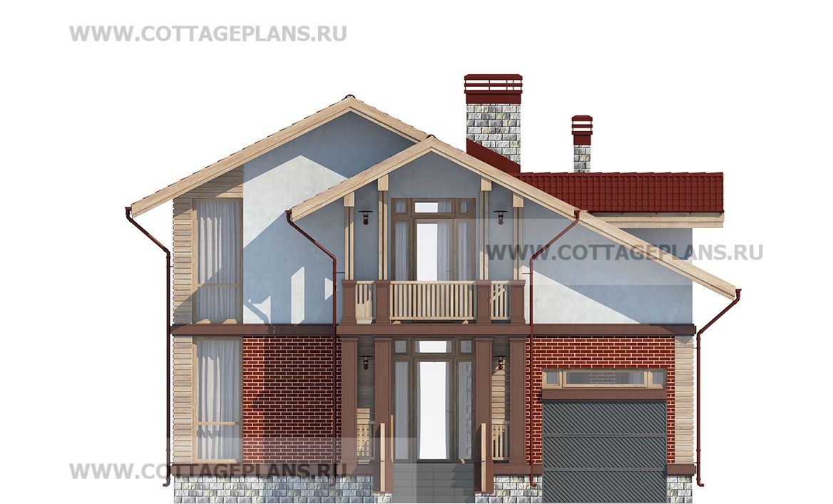 Проект дома 76-41 площадь 250.2 м2* из пеноблоков, газоблоков, двухэтажный с полноценным вторым этажом, с встроенным гаражом на 1 машину