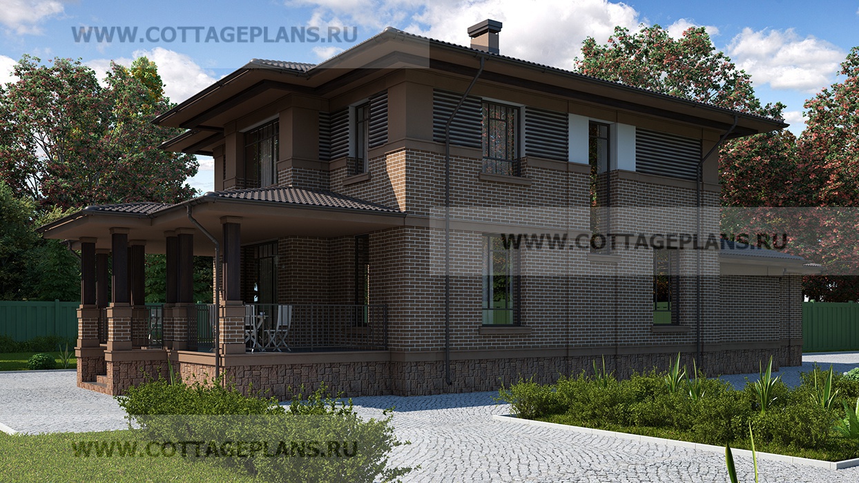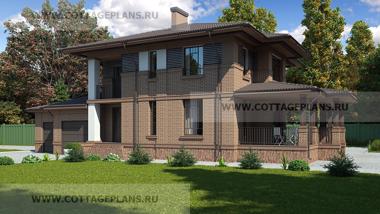 Проект дома 71-92 площадь 373.4 м2* из пеноблоков, газоблоков, двухэтажный с полноценным вторым этажом, с пристроенным гаражом на 2 машины