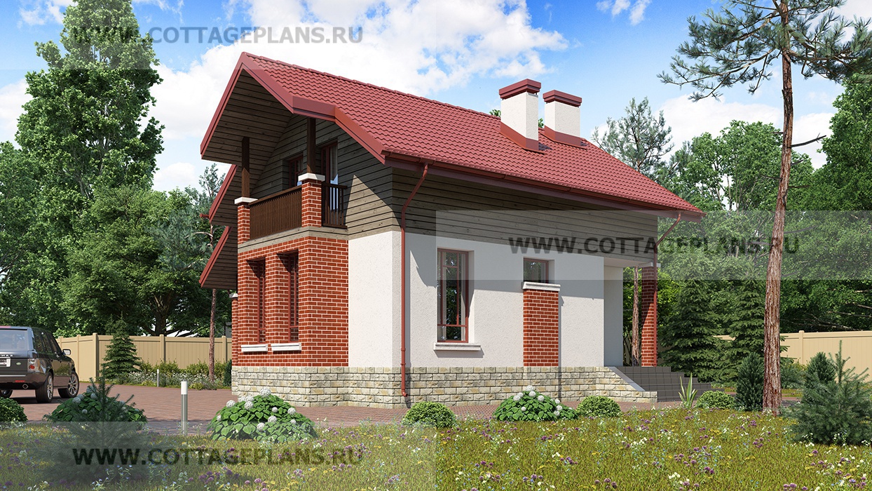 Проект дома 74-10 площадь 72.1 м2* из пеноблоков, газоблоков, двухэтажный с мансардой, с тремя спальнями