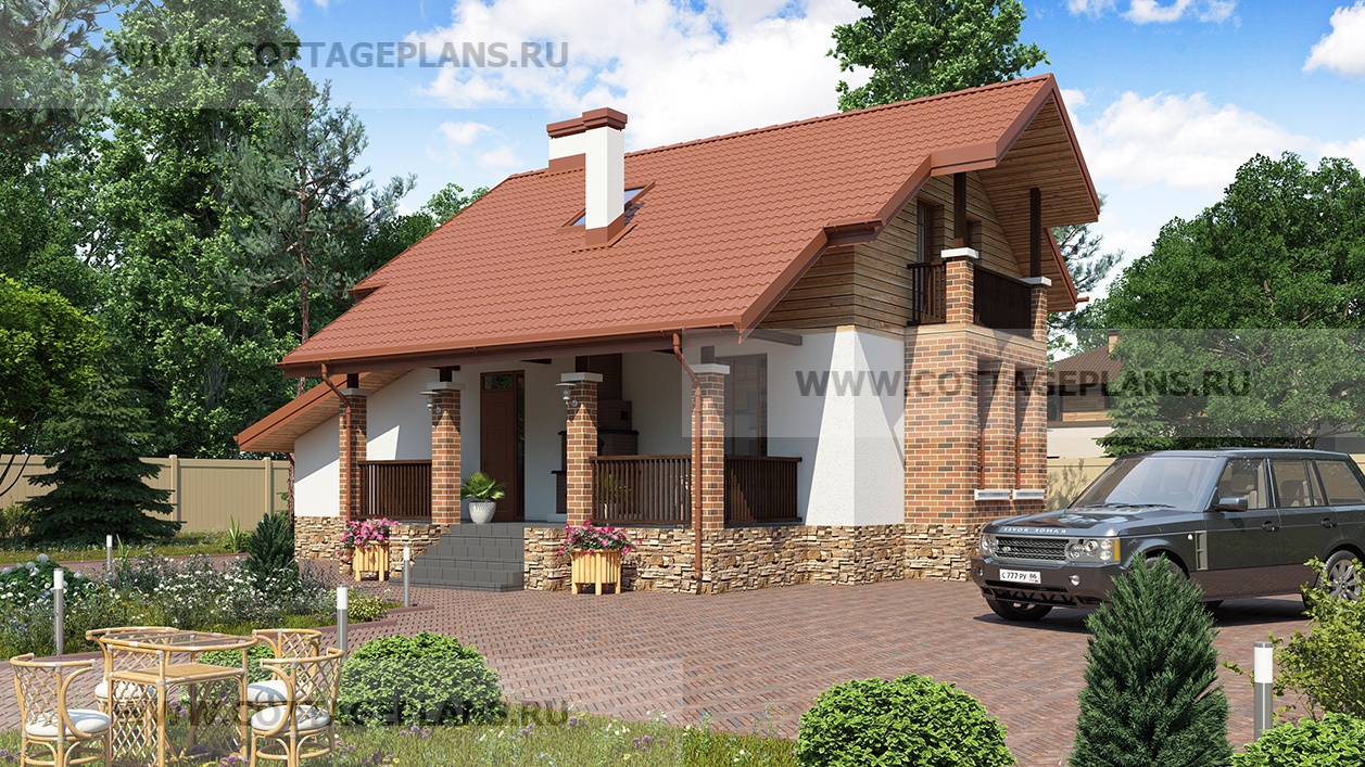 Проект дома 75-90 площадь 116.8 м2* из пеноблоков, газоблоков, двухэтажный с мансардой, с пристроенным гаражом на 1 машину