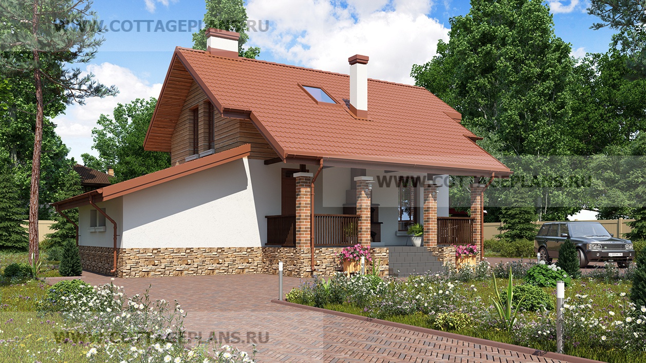 Проект дома 76-89 площадь 144.8 м2* из пеноблоков, газоблоков, двухэтажный с мансардой, с пристроенным гаражом на 1 машину
