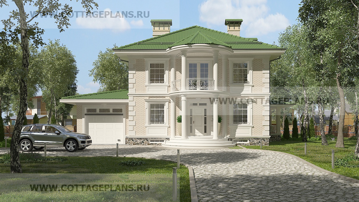 Проект дома 76-96 площадь 306.0 м2* из пеноблоков, газоблоков, двухэтажный с полноценным вторым этажом, с пристроенным гаражом на 1 машину
