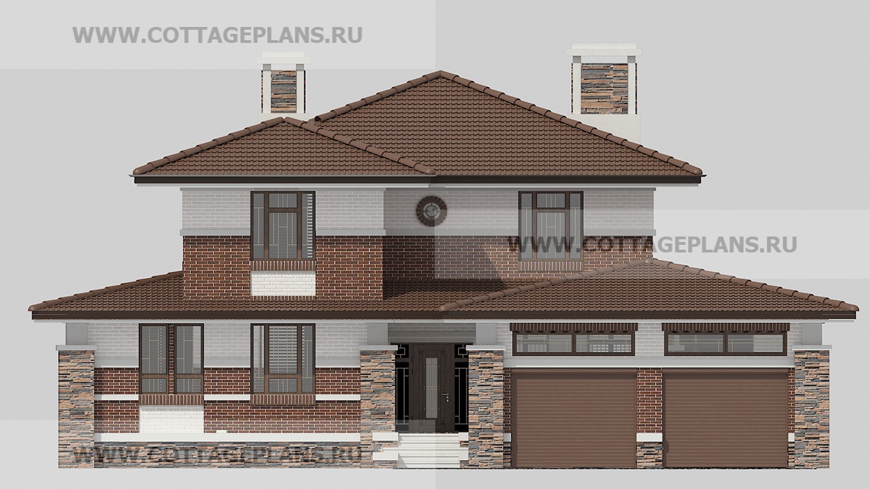 Проект дома 95-09 площадь 327.4 м2* из кирпича, керамических блоков, двухэтажный с полноценным вторым этажом, с пристроенным гаражом на 2 машины