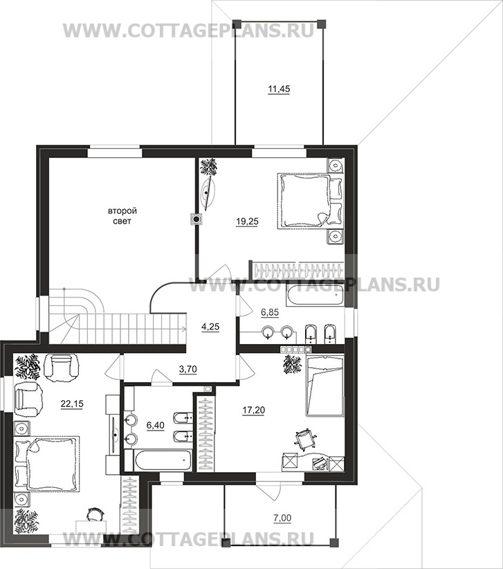 | Высота потолков мансардного этажа (мм.) | 3000 |