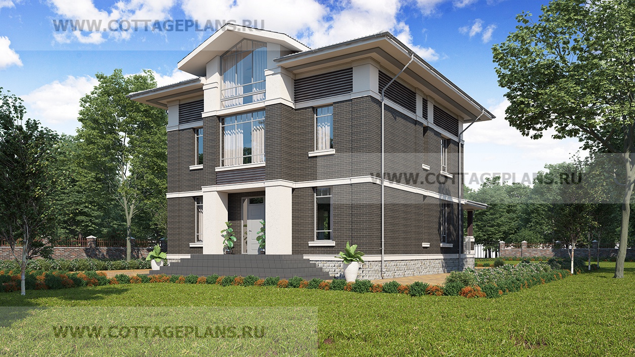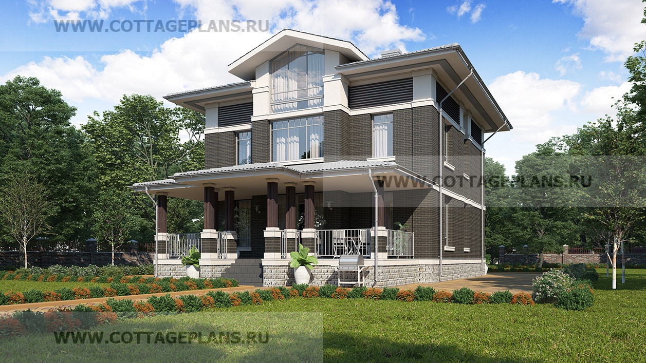 Проект дома 74-86 площадь 225.3 м2* из пеноблоков, газоблоков, трёхэтажный с мансардой, с семью спальнями