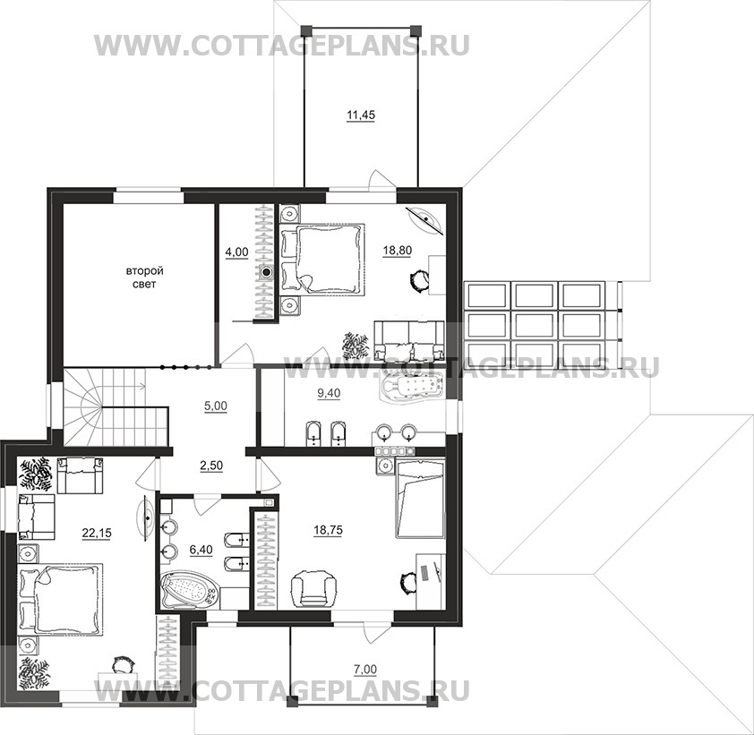 Проект дома 77-44 площадь 246.7 м2* из пеноблоков, газоблоков, двухэтажный с полноценным вторым этажом, со вторым светом