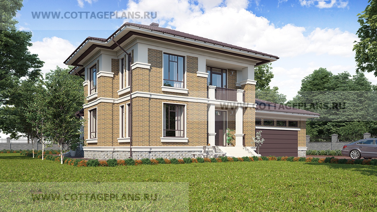 Проект дома 77-57 площадь 273.4 м2* из пеноблоков, газоблоков, двухэтажный с полноценным вторым этажом, с пристроенным гаражом на 2 машины