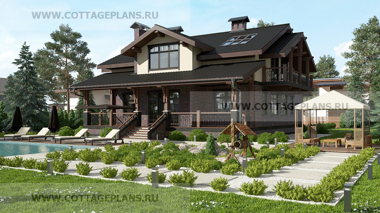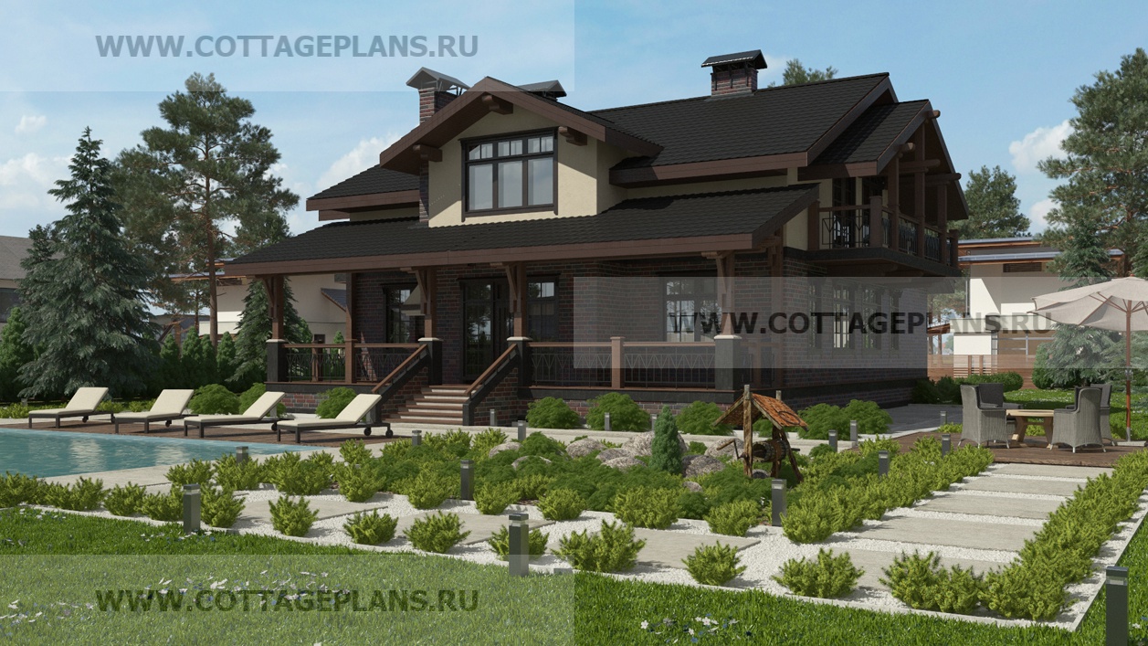 Проект дома 77-74 площадь 225.9 м2* из пеноблоков, газоблоков, двухэтажный с мансардой, со вторым светом